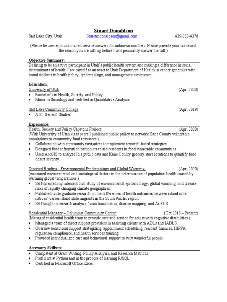 Donaldson JobSearchTarget Ideas Resume 90 s20 PDF Epidemiology